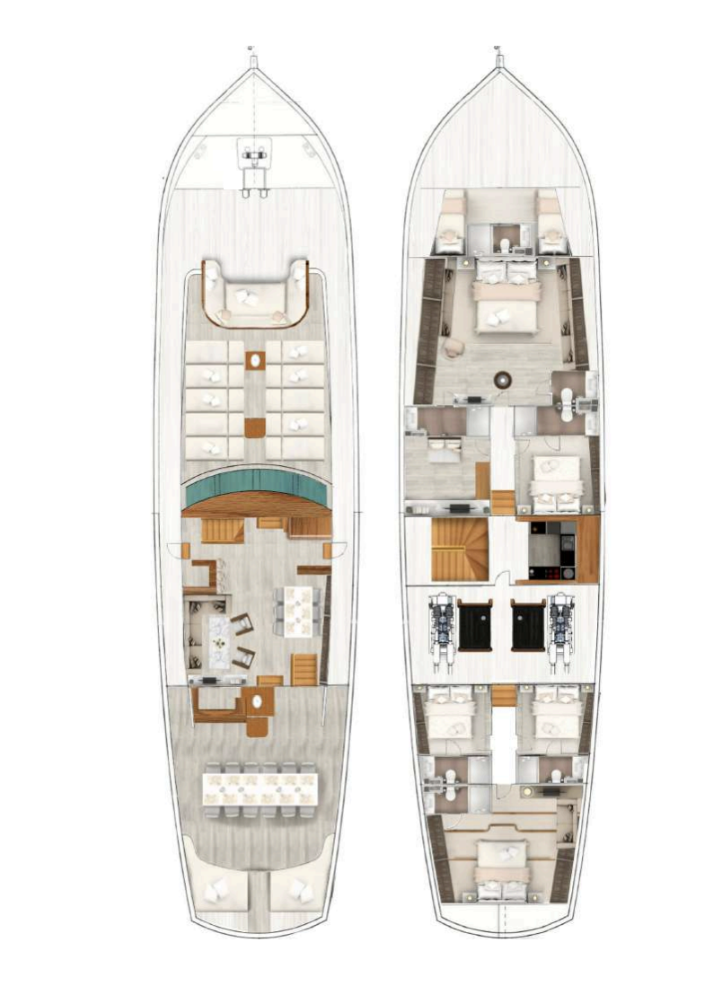 5 cabins for 10 guests (1 Master, 1 VIP, 3 Double each with ensuite facilities). | |